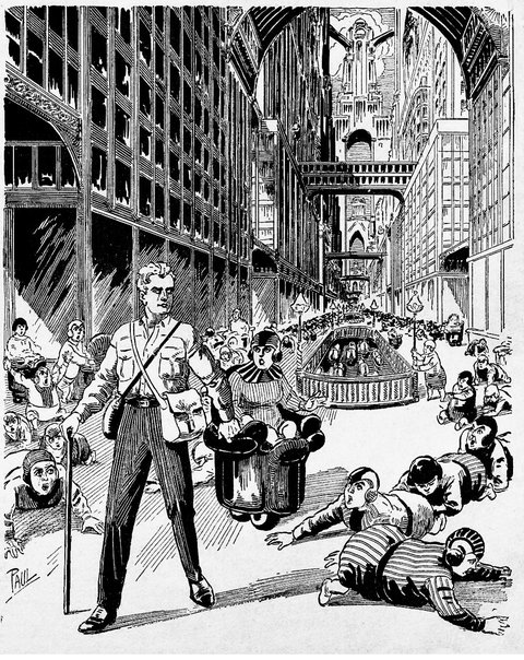 Most of the men pressed their starting button and took hold of the steering rod. Not a machine moved. The others startled, tried to leave. Their auto cars were dead. Then one, with a hysterical curse, raised an automatic at Miller and pulled the trigger. There was a click—and nothing more.